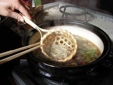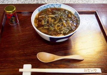 11月末~3月末日までの季節限定漬物を具にして食べる、お蕎麦のしゃぶしゃぶ 投汁蕎麦 とうじそば 酸っぱさがくせになります。